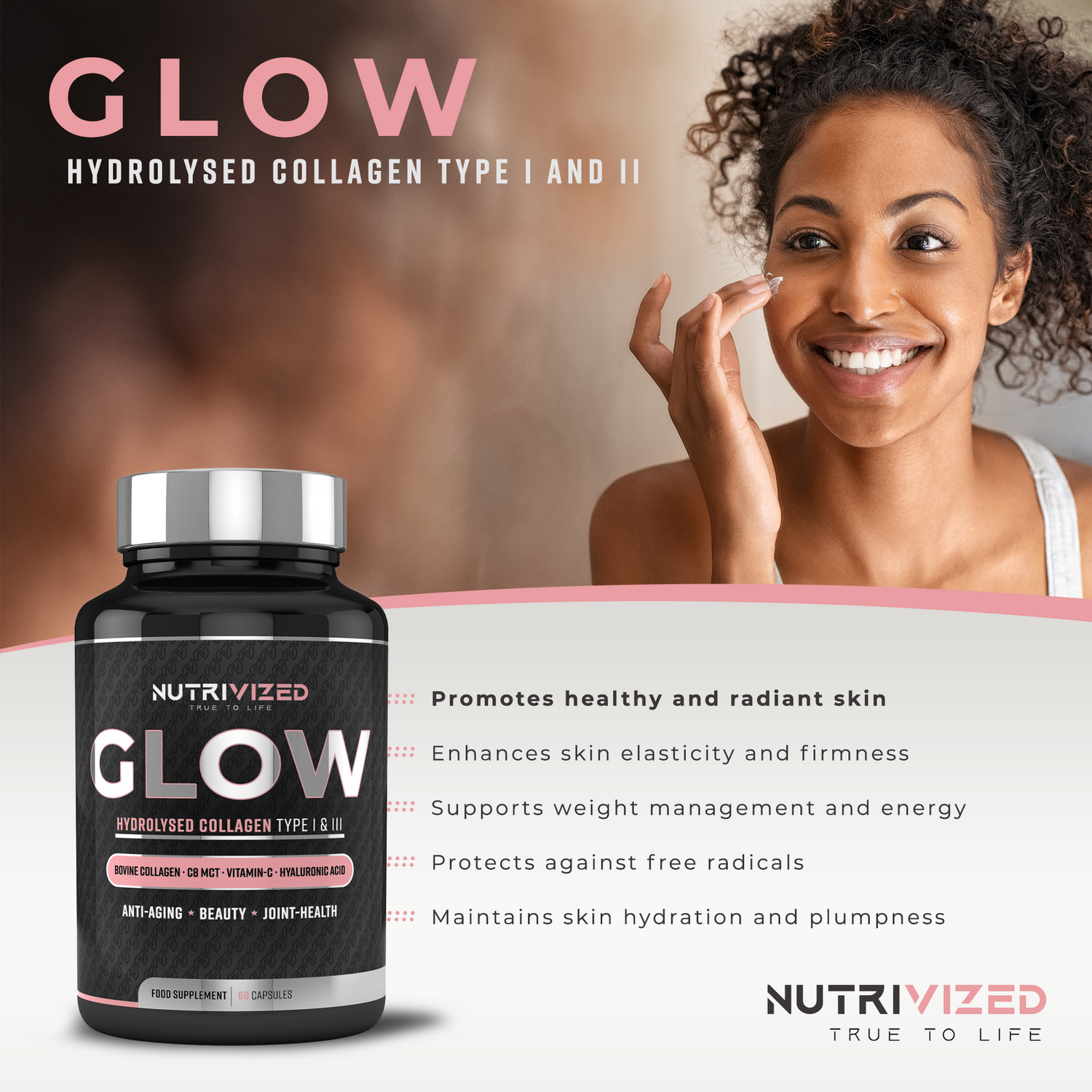 Nutrivized Collagen está formulado con colágeno bovino tipo 1 y tipo 3 alimentado con pasto para que obtenga proteínas óptimas para una piel, cabello y uñas firmes y resistentes, y soporte para las articulaciones.
